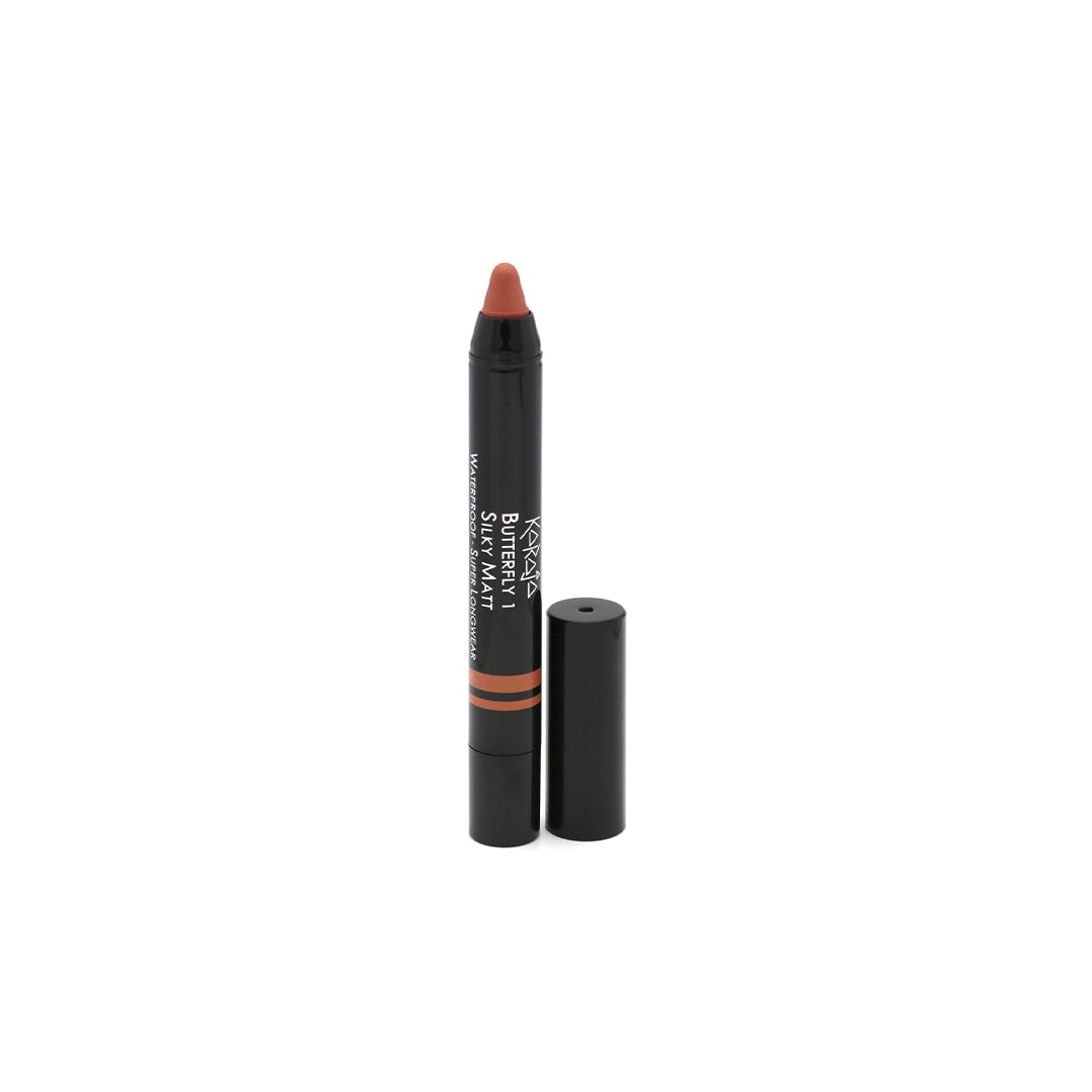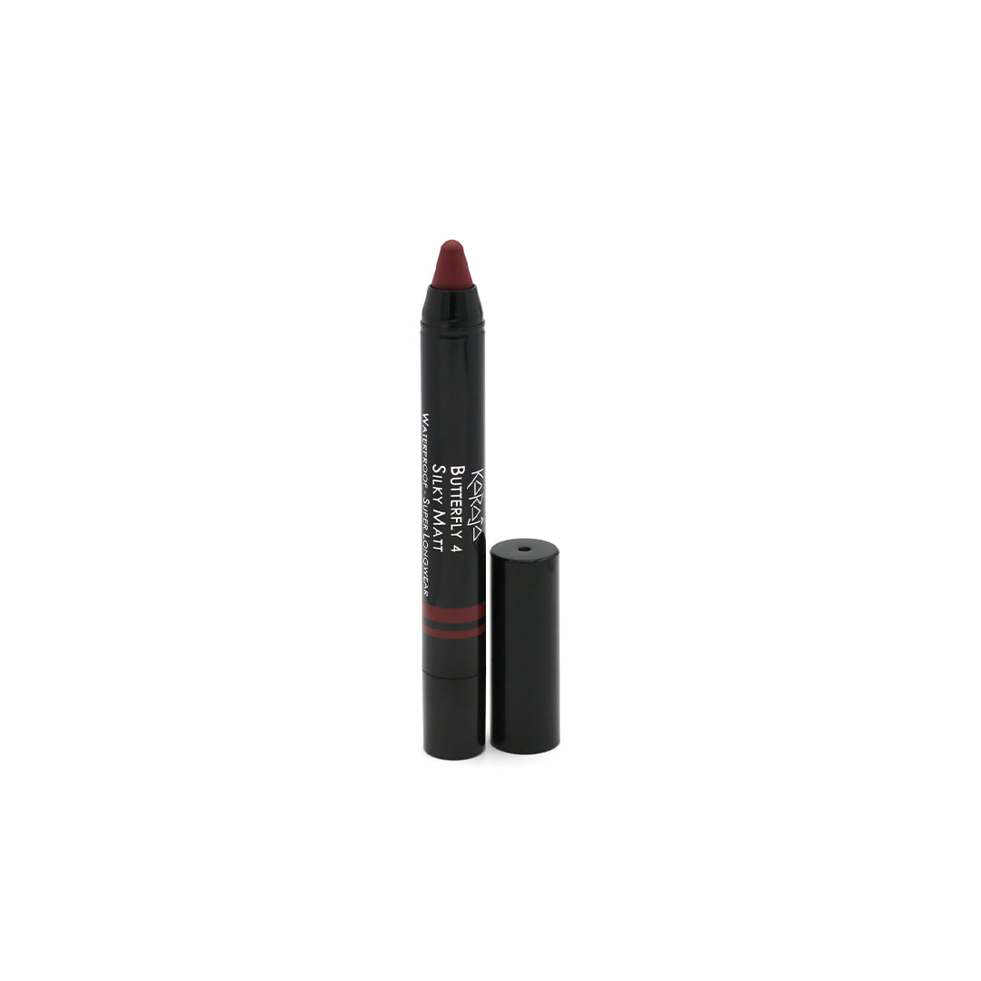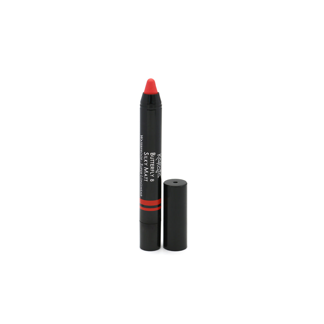De Butterfly Lipstick van Karaja is een grote lipstick in een handig twist-formaat. Het ergonomisch design van de lipstick maakt het eenvoudig om de make-up aan te brengen. Met één soepele beweging heb je al een gelijkmatige dekking voor een prachtige matte finish. De lipstick is bovendien waterproof en behoudt voor langere tijd een prachtige kleur, zonder dat het uitdroogt of vlekt.
