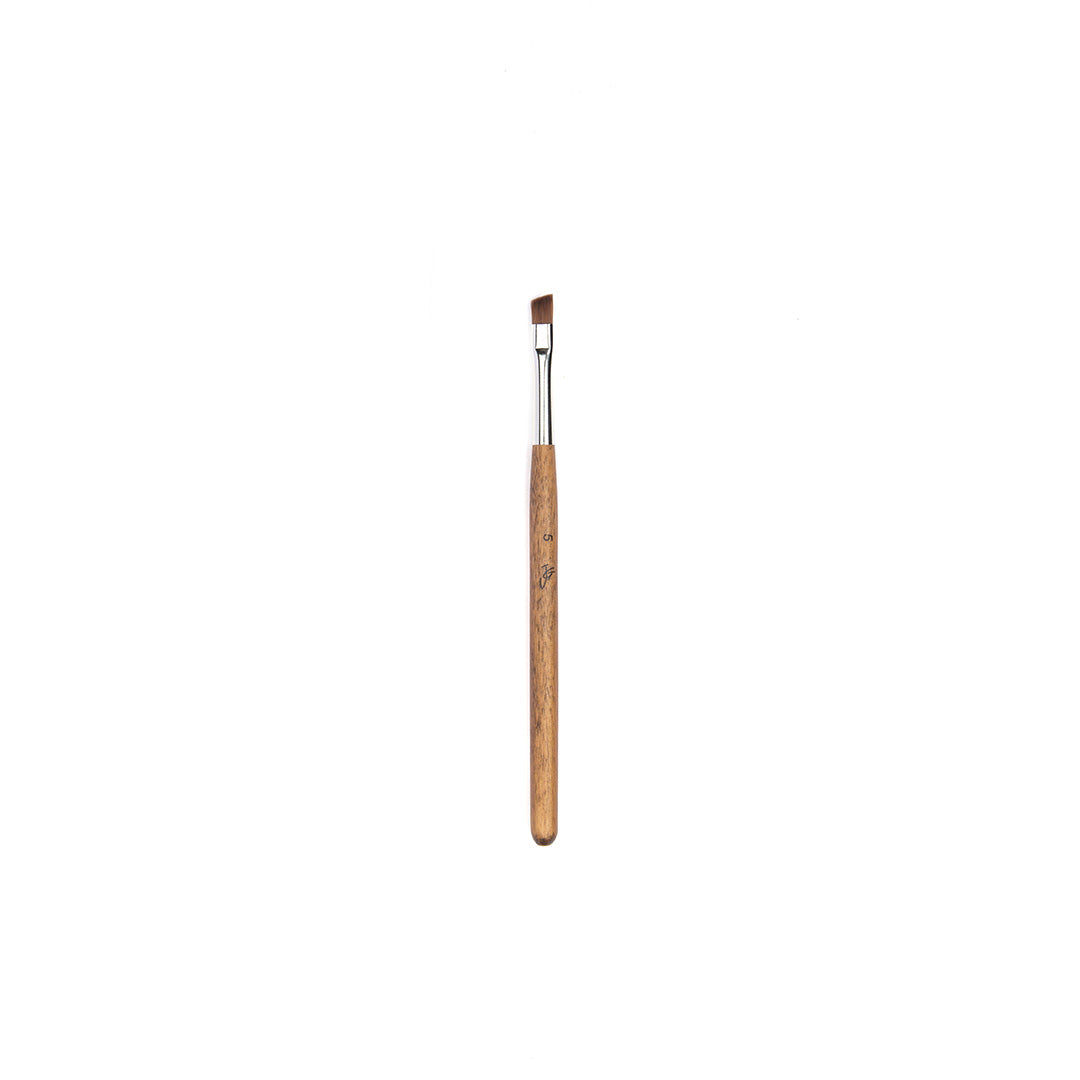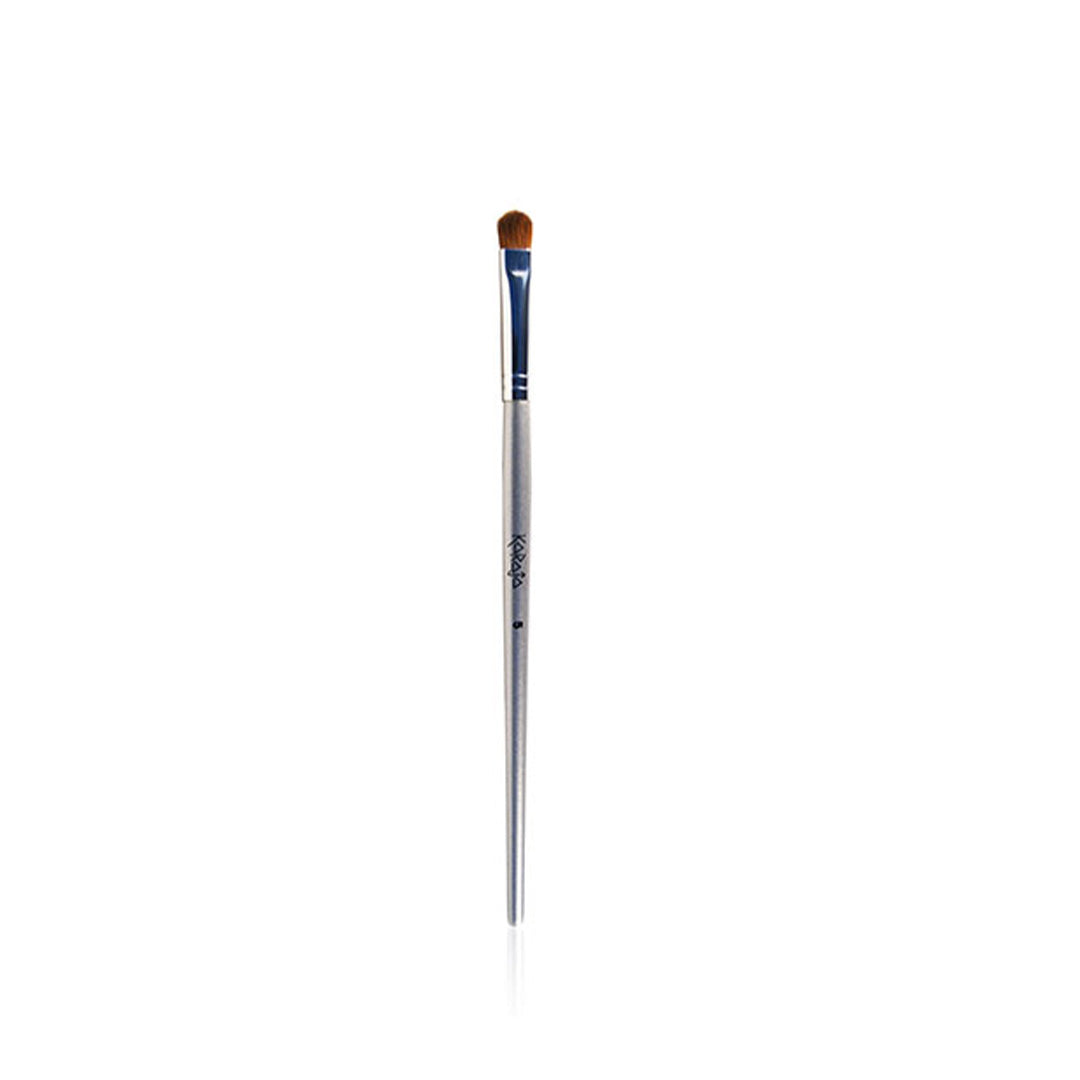 - Het rechte oogpenseel (eyeliner kwast) met korte rechte haartjes om heel nauwkeurig te werken met strakke/rechte lijnen in het gebied rondom de ogen.