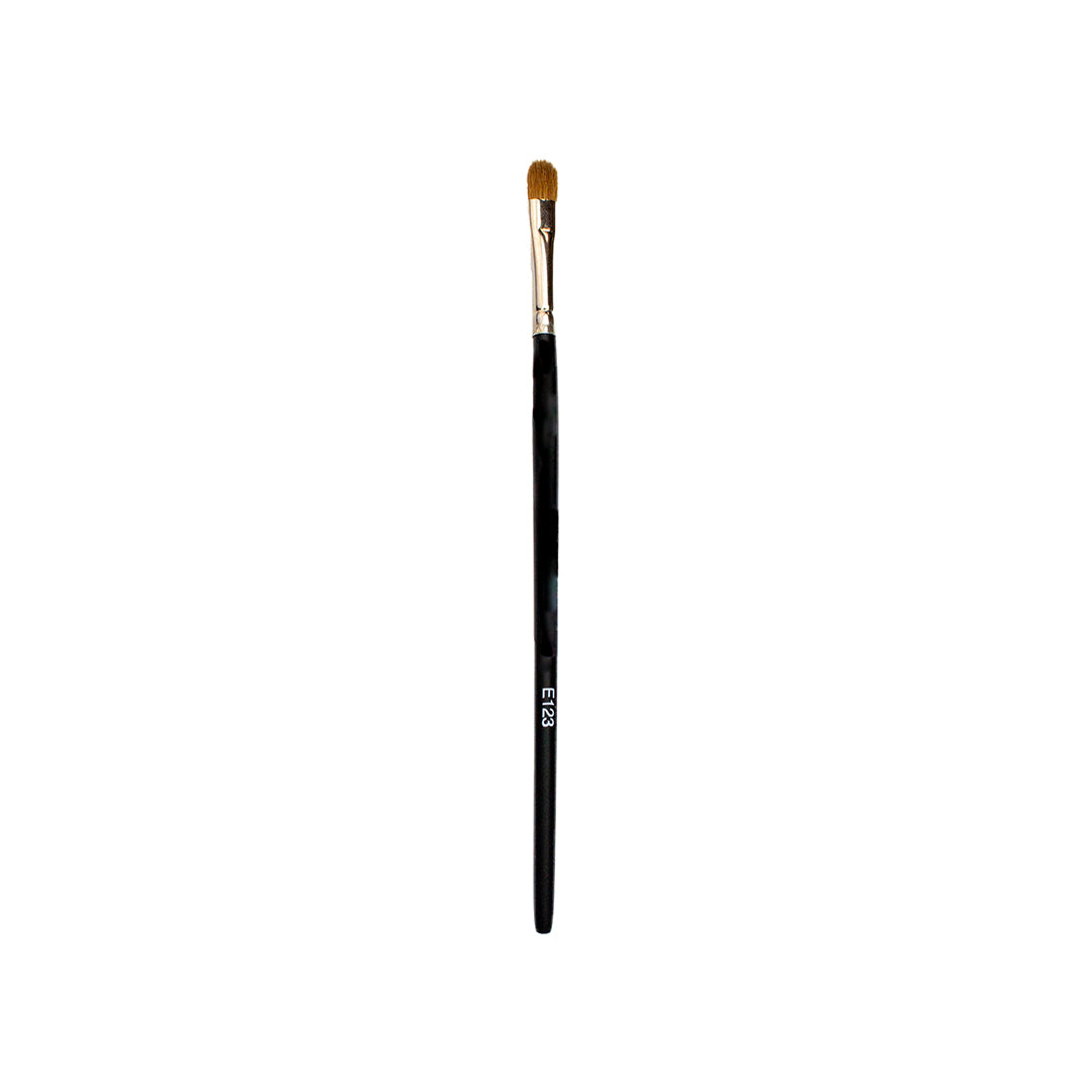 - Het rechte oogpenseel (eyeliner kwast) met korte rechte haartjes om heel nauwkeurig te werken met strakke/rechte lijnen in het gebied rondom de ogen.