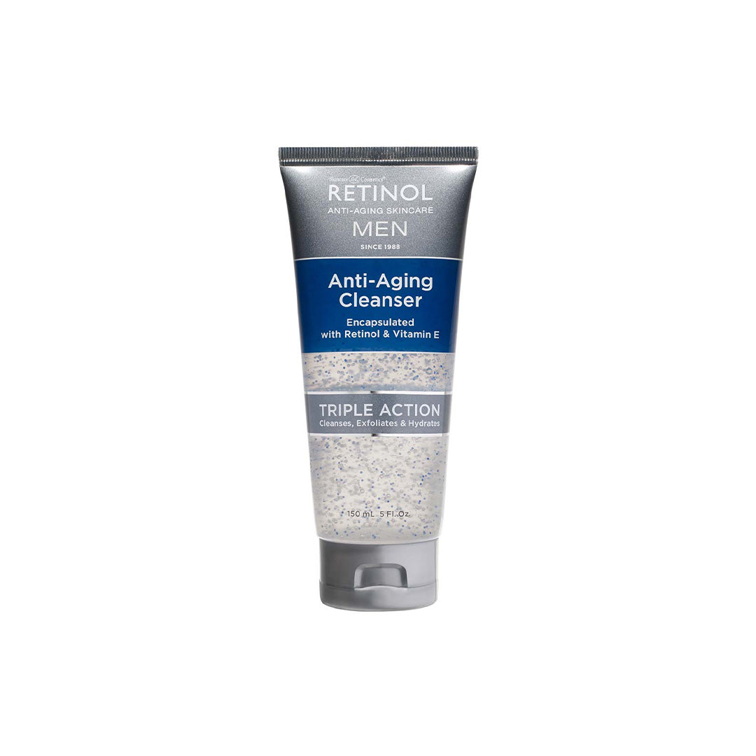 Retinol Men Anti-Aging Cleanser reinigt, exfolieert en hydrateert de huid. De reinigende gel verwijderd overtollig talg en andere onzuiverheden uit de poriën. Daarnaast zorgt de gel voor intense hydratatie van de huid, met een gladde en stevige huid als resultaat. De gel bevat vitamine A voor exfoliatie en vitamine E voor antioxiderende eigenschappen.