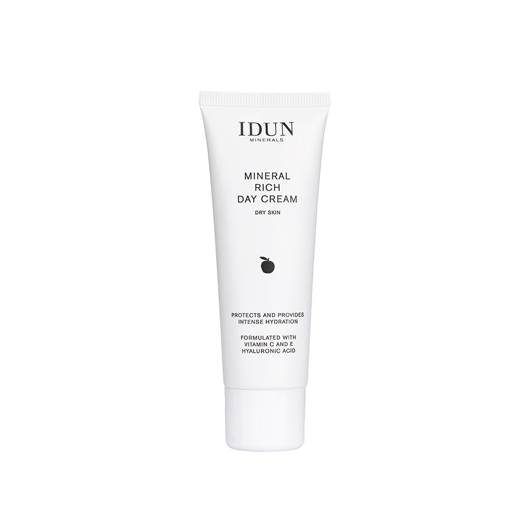 De Mineral Rich Cream Dry Skin van IDUN Minerals is een beschermende en hydraterende dagcrème die speciaal ontwikkeld is voor de droge huid. Ook voor mensen met een gevoelige huid is deze crème uitermate geschikt om dagelijks aan te brengen. Het product is 100% vegan en geformuleerd met Zweeds koolzaadolie en hyaluronzuur voor extra hydratatie. De intens verzorgende crème maakt de huid niet vet en zwaar en blijft gedurende de hele dag doorwerken. Door de zijdezachte textuur voelt de crème licht aan en is deze aangenaam om aan te brengen.