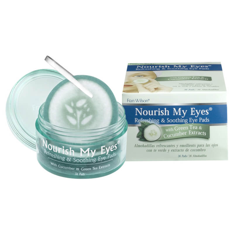 Nourish My Eyes Cucumber Eye Pads van Fran Wilson zijn verzachtende oogpads die de vermoeide, geïrriteerde en opgezette ogen verfrissen en ontspannen. Deze kalmerende, bevochtigde pads bevatten zachte, natuurlijke extracten plus groene thee om vrije radicalen te bestrijden, en Mulberry om wallen te verminderen en kringen onder de ogen te verlichten.